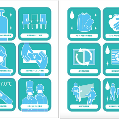 「感染防止宣言ステッカー」を掲示しているお店は、新型コロナウイ ルス感染症の感染防止対策を実施しています。お店を選ぶ際は、 ステッカーを目印に感染防止対策を行っているお店を選びましょう。