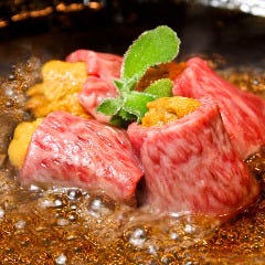 贅沢の極み!ウニの炙り黒毛和牛巻き
