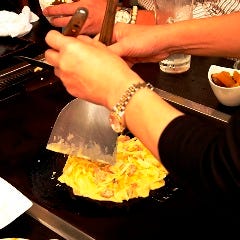 目の前で調理されるお好み焼き!