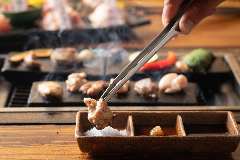 石の上で焼く、焼き鳥。
