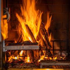 店舗中央で焼く本格的な薪火料理