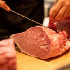 熟練店主による手切り黒毛和牛