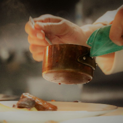 自然素材が醸すやさしい空間で、 旬を味わう週変わりランチや贅沢なコース料理を。 牛ほほ肉は、2日間…