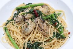 広島産カキと春菊のペペロンチーノ