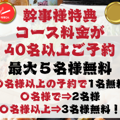 3時間飲み放題付コース◆幹事様特典