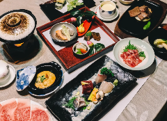 囲炉裏灯る和の空間で、厳選黒毛和牛の濃厚な旨味に浸る。 和食に合う日本酒や焼酎、ワインも豊富にご用…