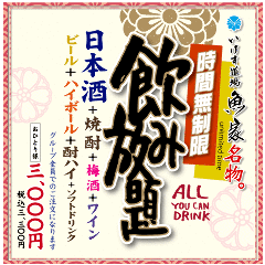 いけす道場名物。時間無制限飲み放題